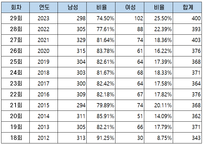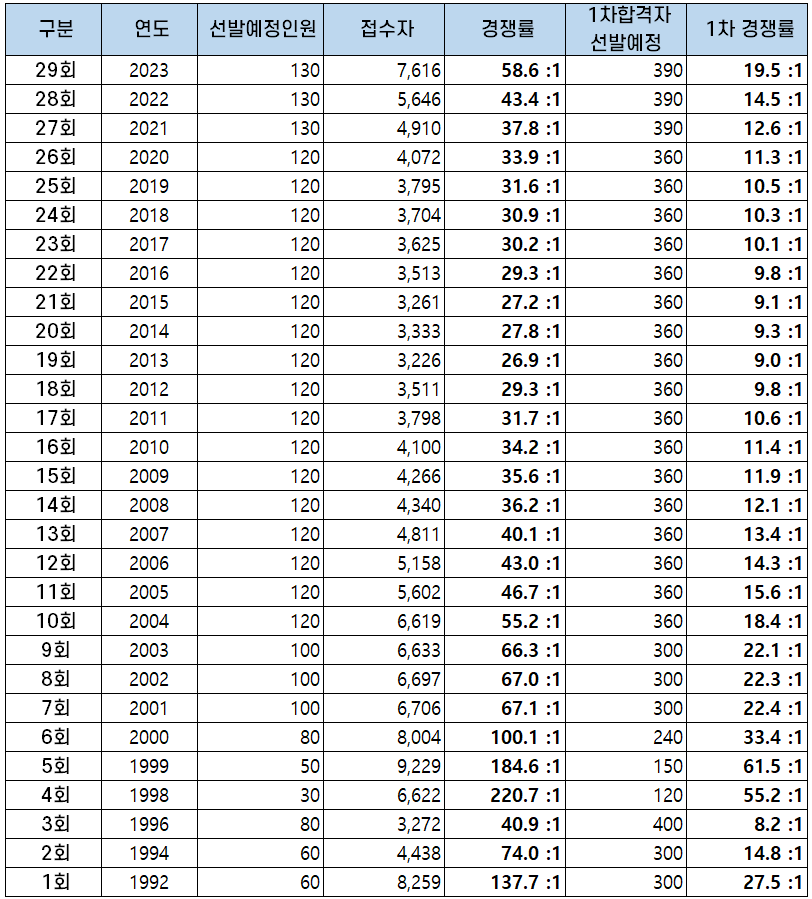 | 29회 | 2023 | 3,849 | 400 | 10.39% |