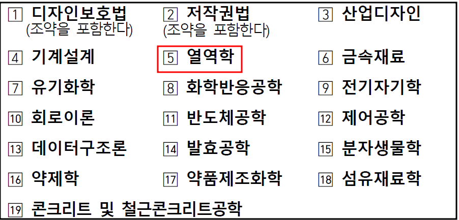 열역학은 변리사 2차 시험 19개 선택과목 중 하나인데요.