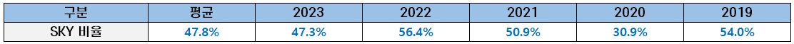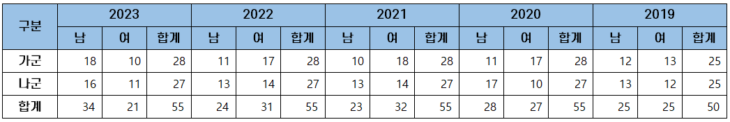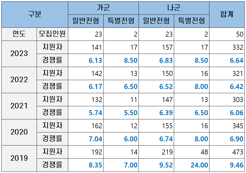 | 모집군 | 구분 | 2023 | 2022 | 2021 | 2020 | 2019 |