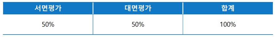 면접전형은 서면평가와 대면평가가 각 50%의 비유로 반영되는데요.