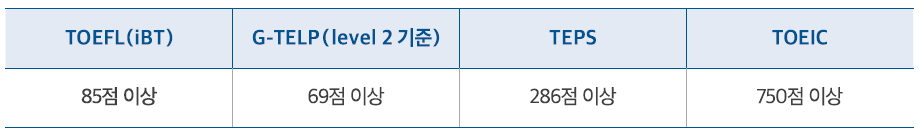 영어 성적은 지원서 원서접수 마감일 기준 2년 이내에 응시하여 취득한 성적만 인정됩니다.