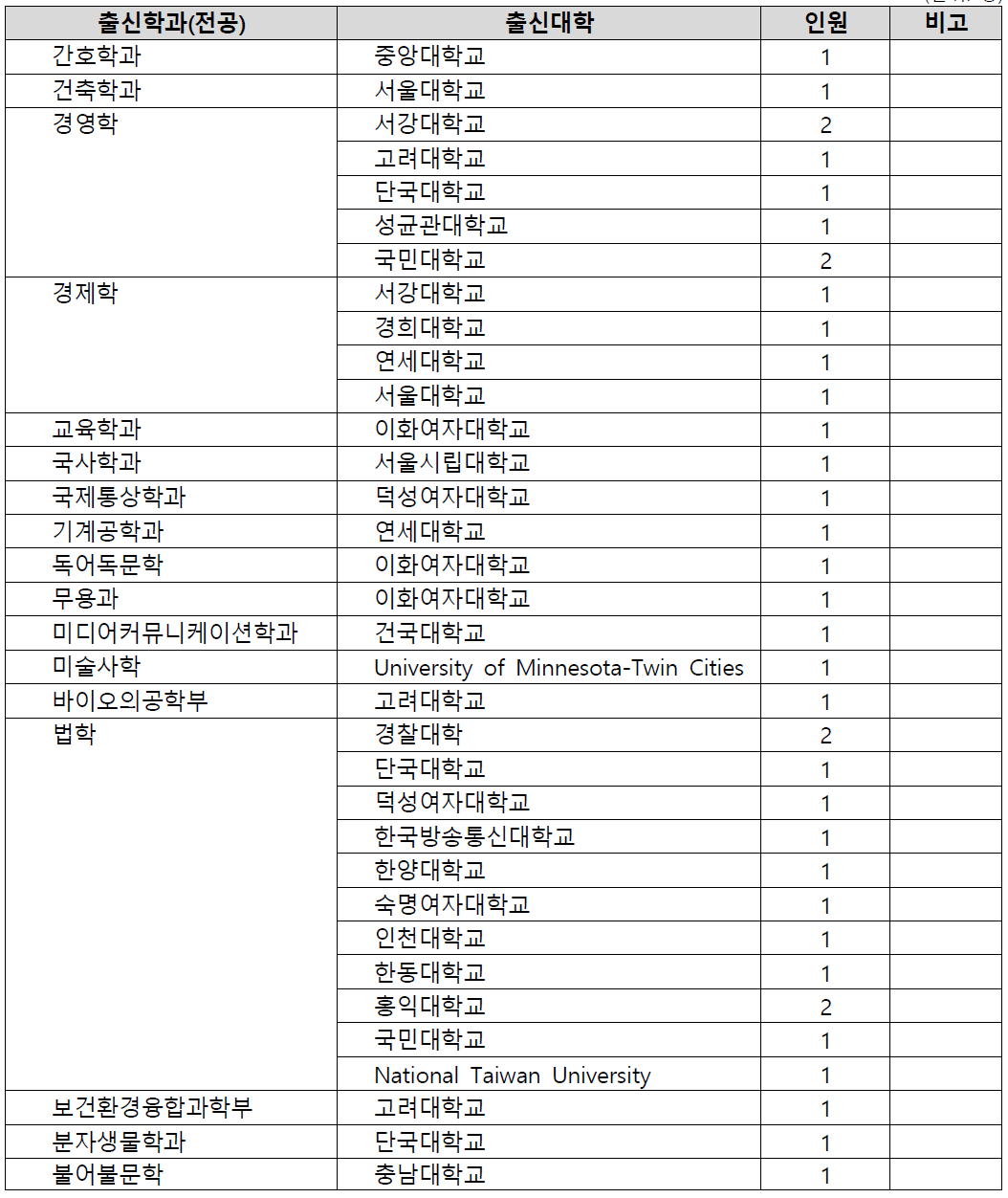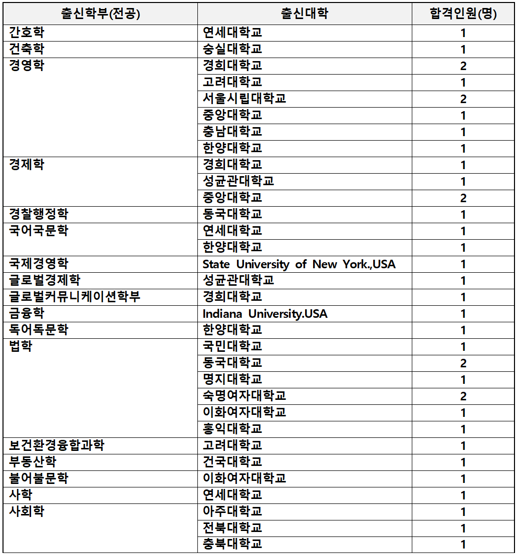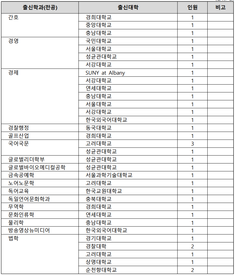 1. 충북대 로스쿨 합격자 출신 대학 및 전공