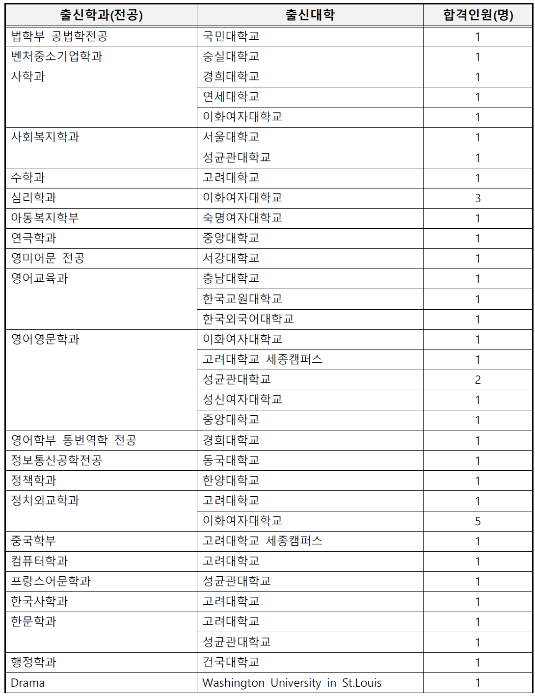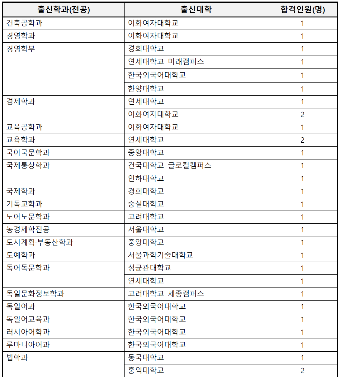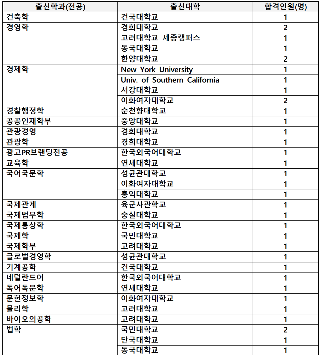 1. 충북대 로스쿨 합격자 출신 대학 및 전공