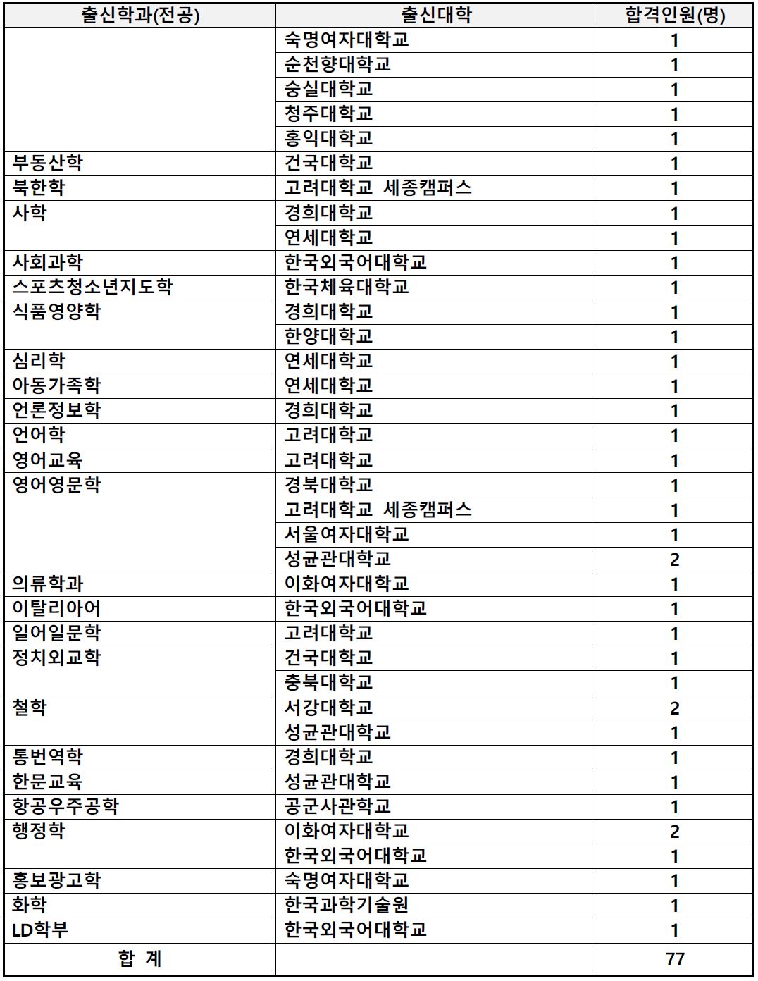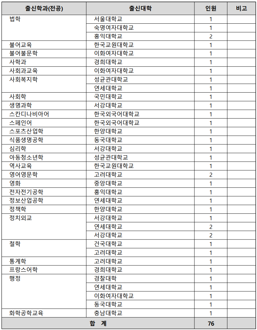 | 2022 | 지원자 | 181 | 134 | 17 | 332 |