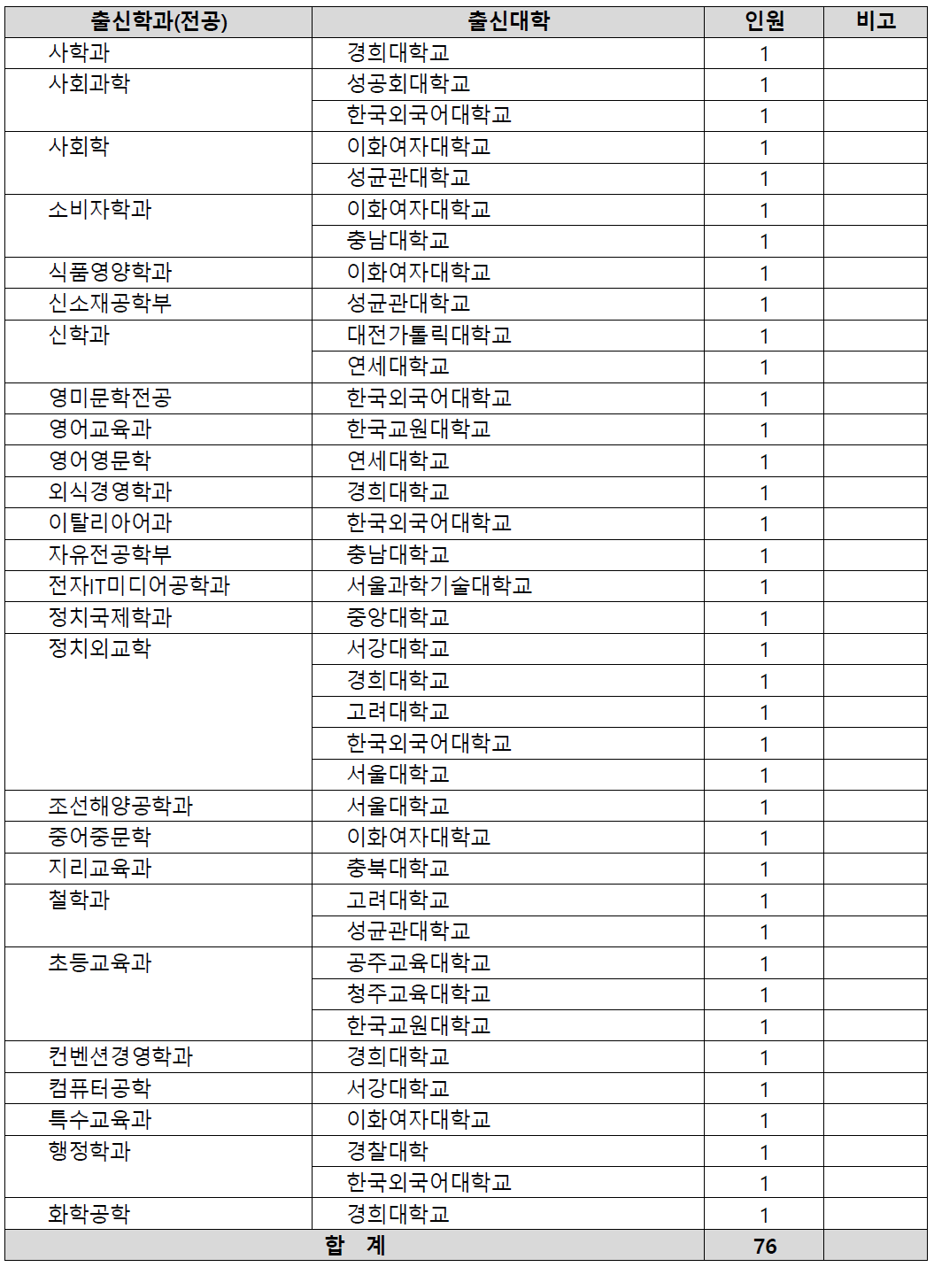 | 2020 | 지원자 | 198 | 114 | 19 | 331 |