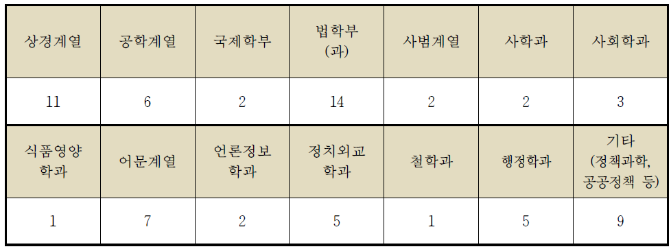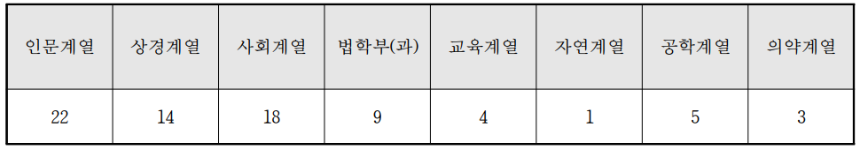 2. 영남대 로스쿨 합격자의 전공(계열)