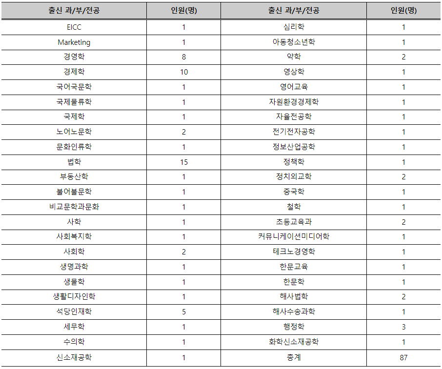 2. 동아대 로스쿨 합격자의 전공(계열)
