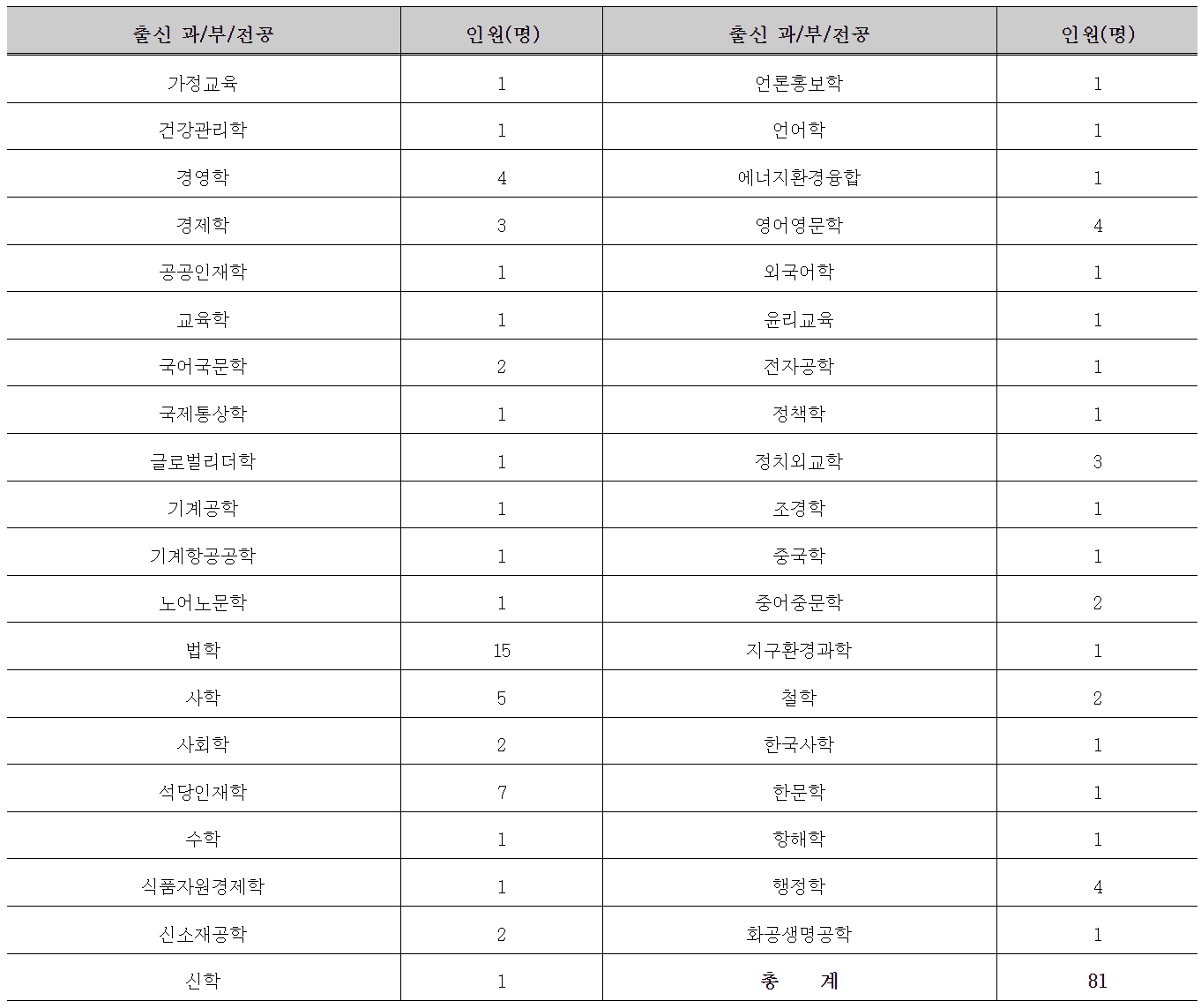 | 연도 | 모집인원 | 18 | 2 | 19 | 1 | 40 |