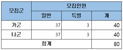 | 구분 | 가군 | 나군 | 합계 | |||
