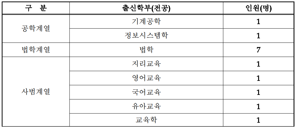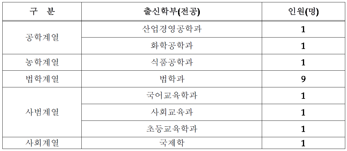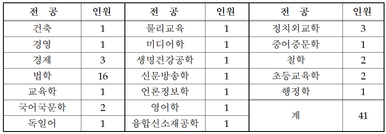 2. 강원대 로스쿨 합격자의 전공(계열)