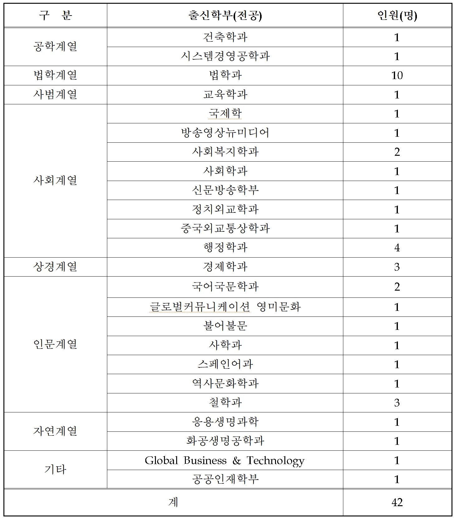 | 구분 | 일반전형 | 특별전형 | 합계 | |