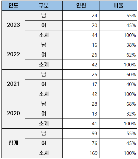 | 2023 | 지원자 | 223 | 20 | 243 |