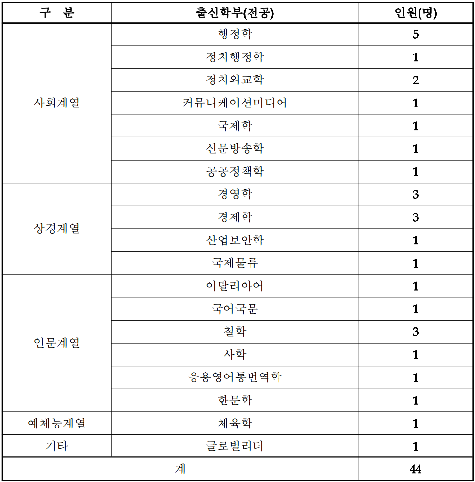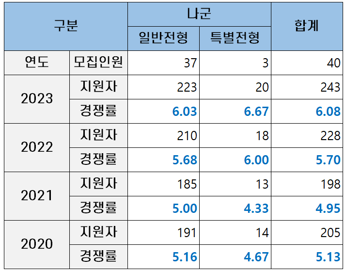 | 연도 | 모집인원 | 37 | 3 | 40 |