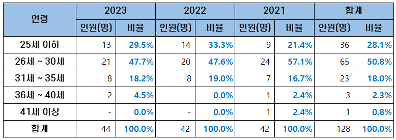| 연령 | 2023 | 2022 | 2021 | 합계 |