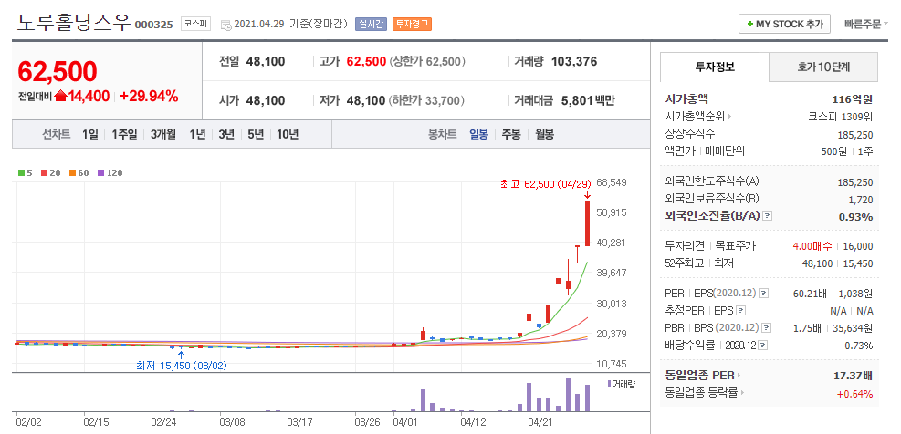 이밖에도 덕성우(004835), 노루홀딩스우(000325)도 윤석열 관련주라는 테마로 상한가를 기록하며 큰 폭으로 상승한 바 있습니다.
