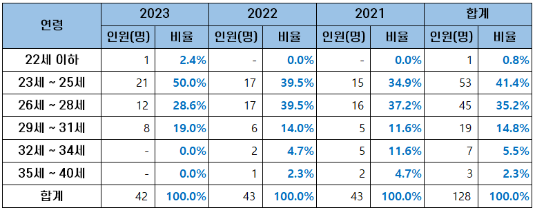 | 연령 | 2023 | 2022 | 2021 | 합계 |
