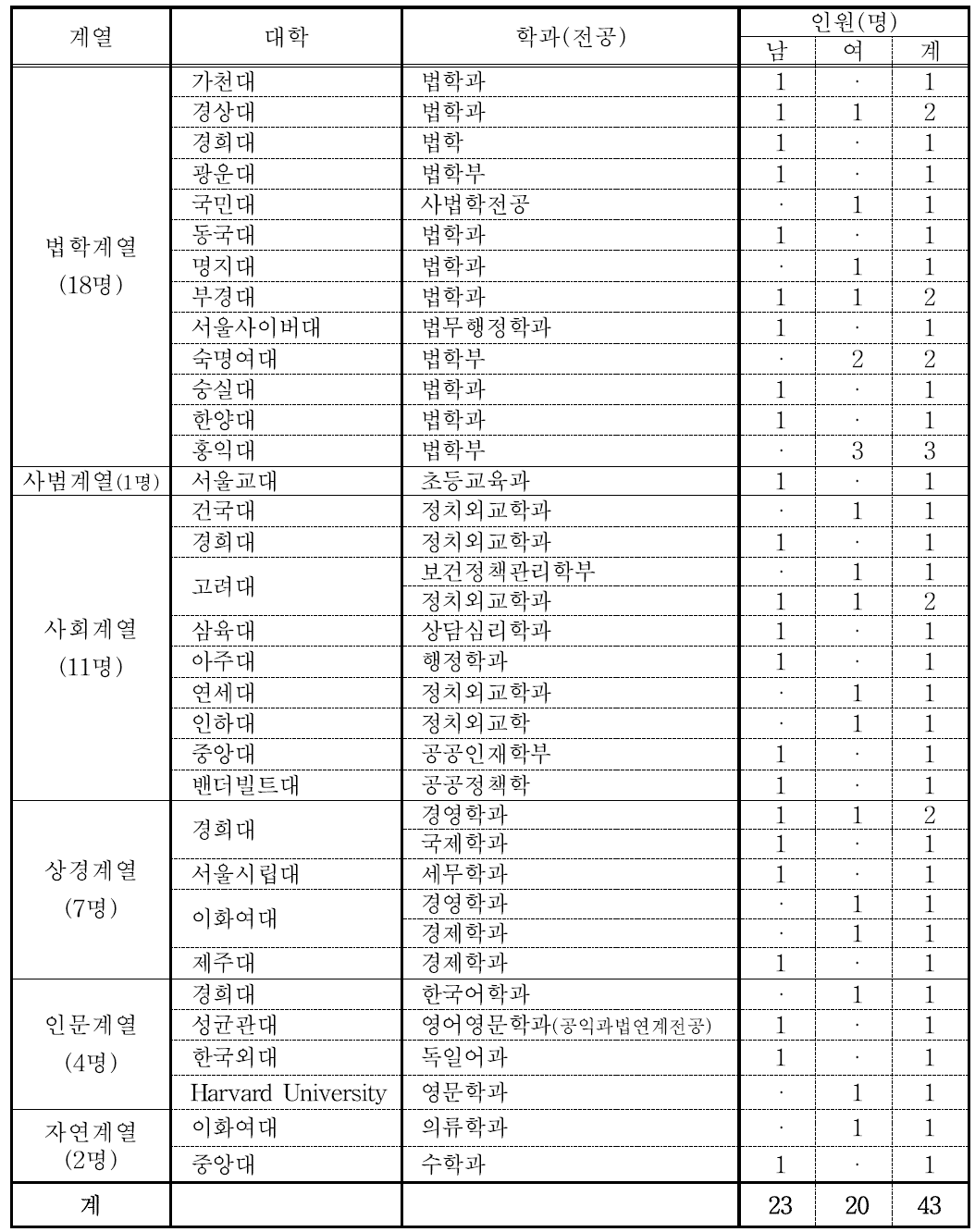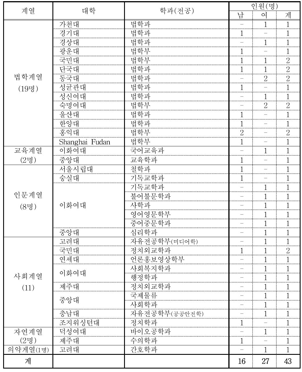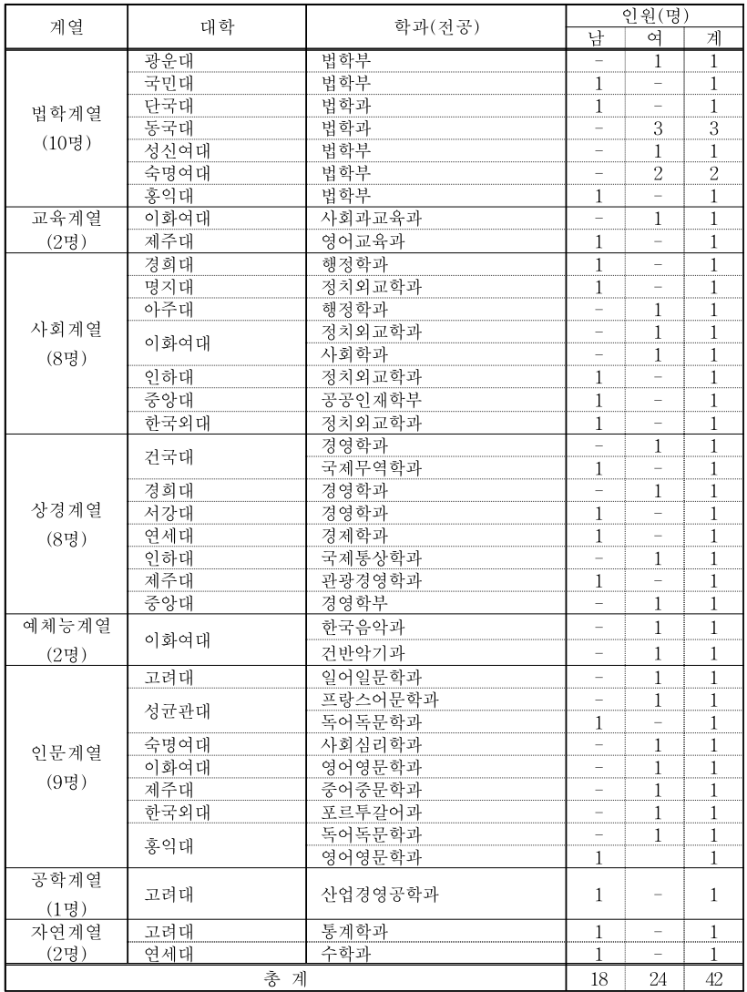 2. 제주대 로스쿨 합격자의 전공(계열)