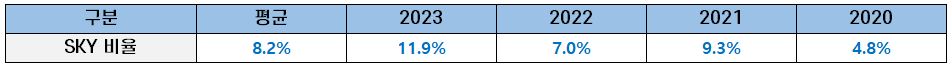 학부가 제주대인 자교 출신 비율은 4.1% 정도이고 서울대, 연세대, 고려대를 합한 SkY 대학 출신 비율도 8.2%로 25개 로스쿨 중 가장 낮습니다.