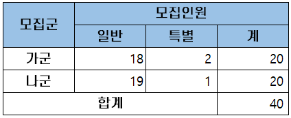 | 연도 | 모집인원 | 18 | 2 | 19 | 1 | 40 |