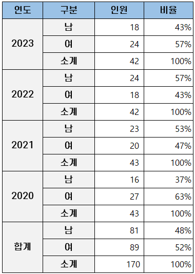 | 2022 | 지원자 | 125 | 12 | 119 | 5 | 261 |