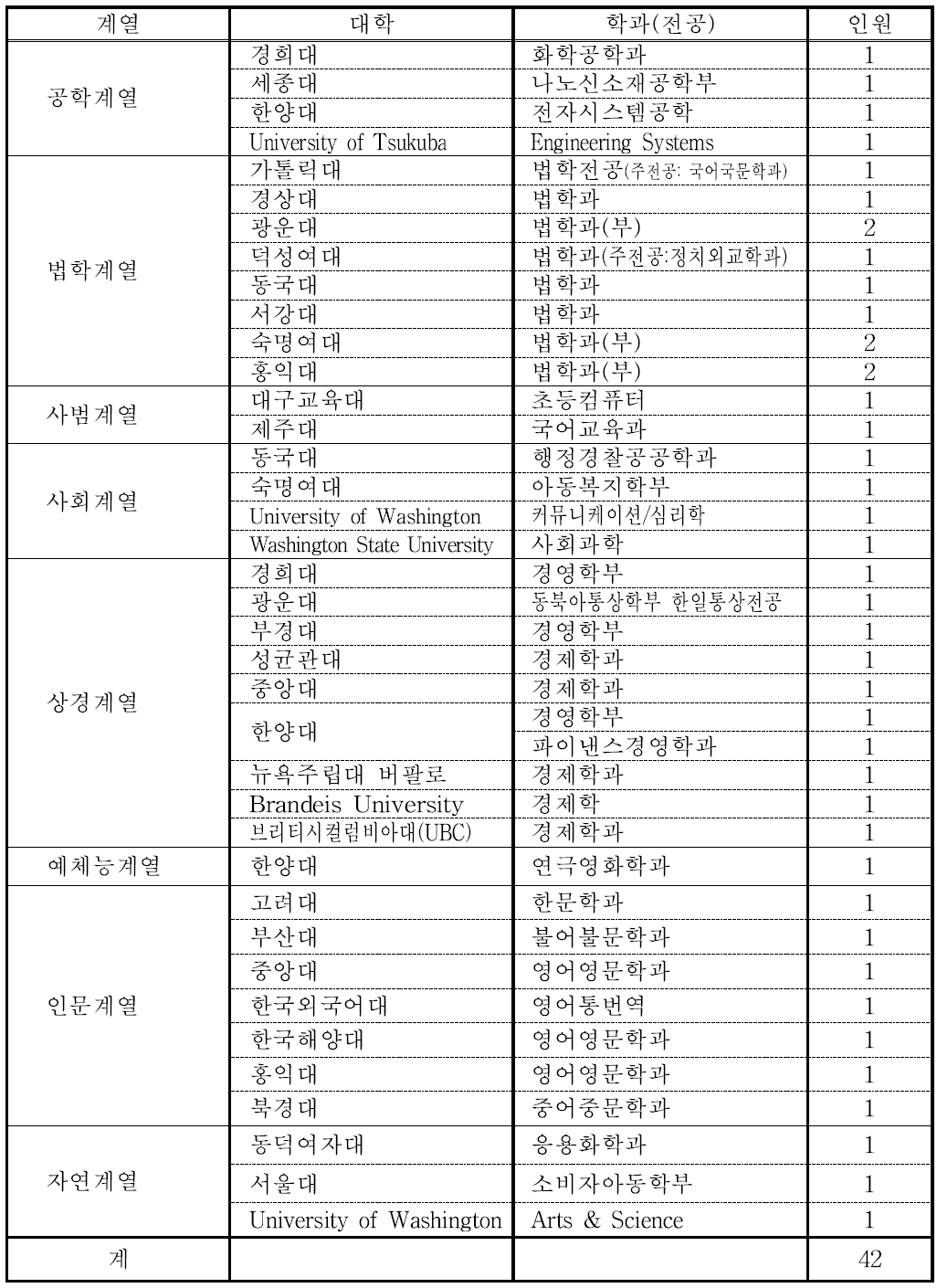| 2 | 외국 소재 대학 | 12 | 2 | 2 | 8 | |