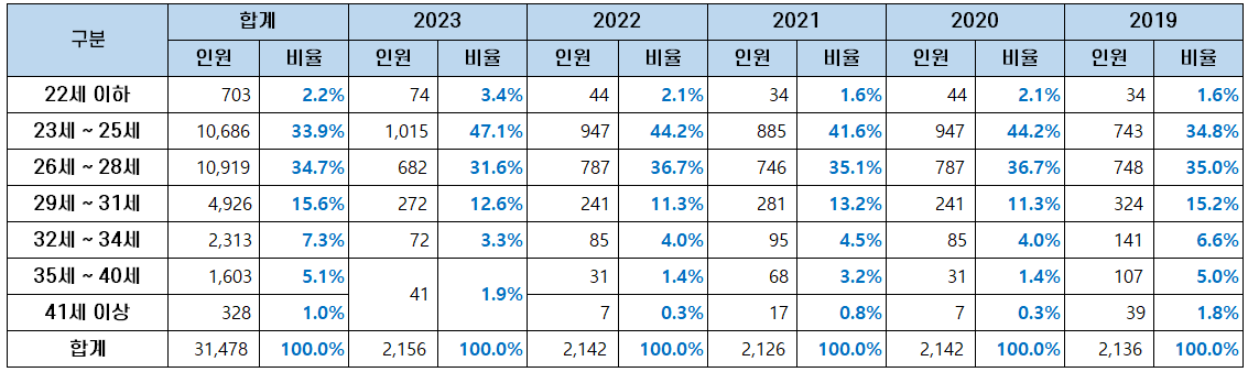 | 23세 ~ 25세 | 10,686 | 33.9% |