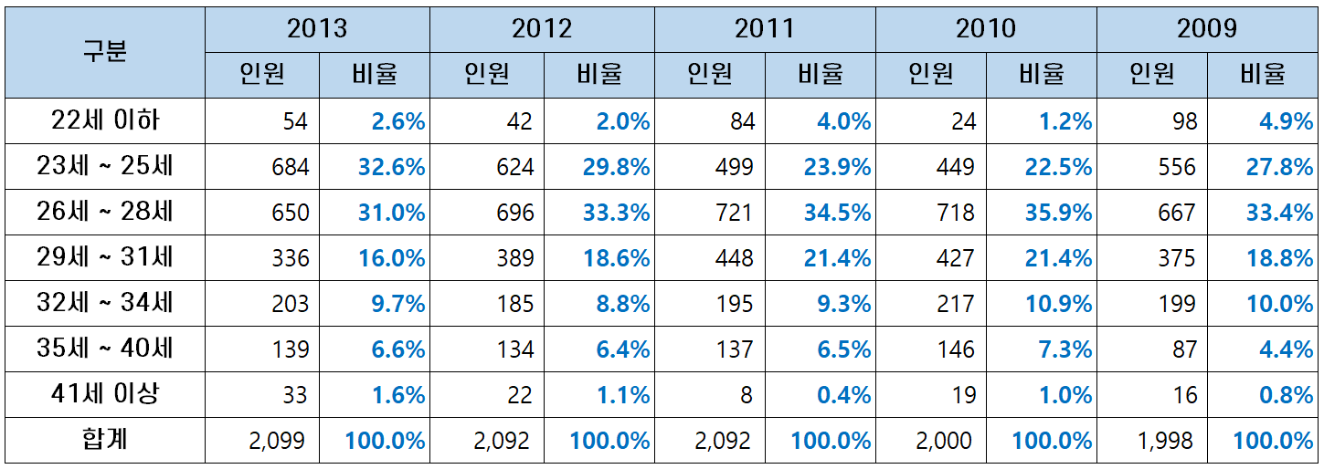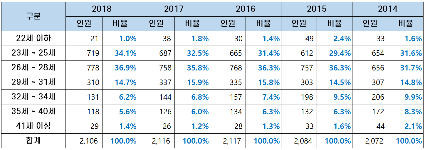 | 26세 ~ 28세 | 778 | 758 | 768 | 757 | 656 |