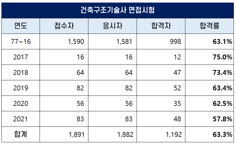 건축구조기술사 면접시험 합격률