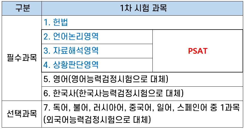 | 법원행시 시험 과목 변경 안내 (2025년 PSAT 도입) (0) | 2022.10.06 |