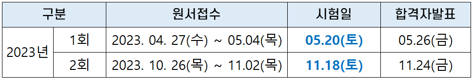 2023년 공공회계전문가 자격시험 일정은 다음과 같습니다.