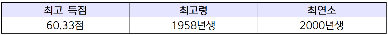 최고령 합격자는 1958년생이고, 최연소 합격자는 2000년생입니다.