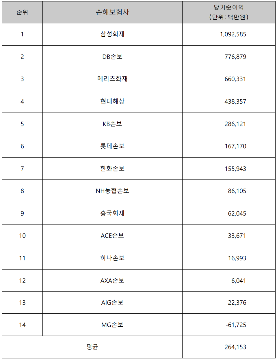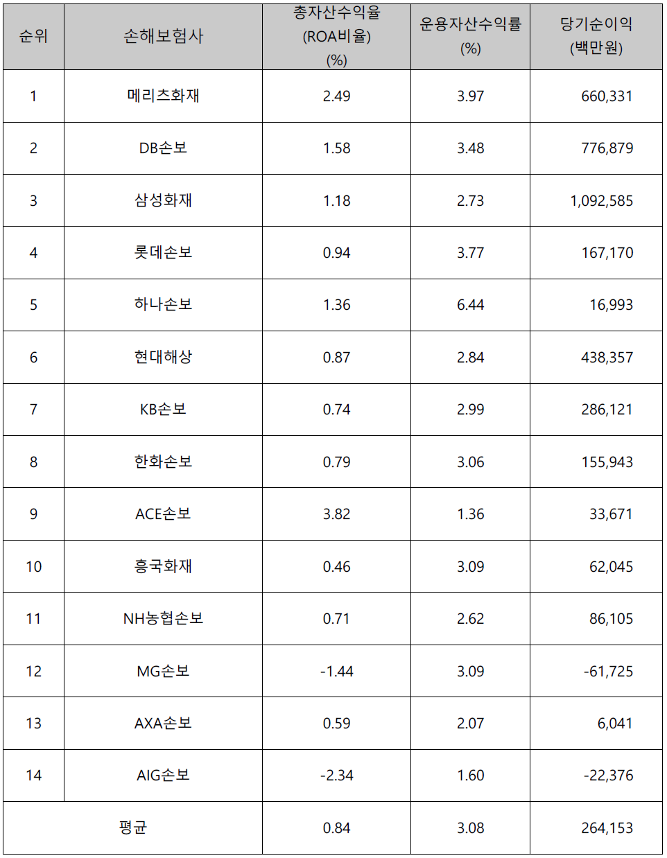 2022년 손해보험사 수익성 순위는 메리츠화재가 1위, DB손해보험이 2위, 삼성화재가 3위입니다.