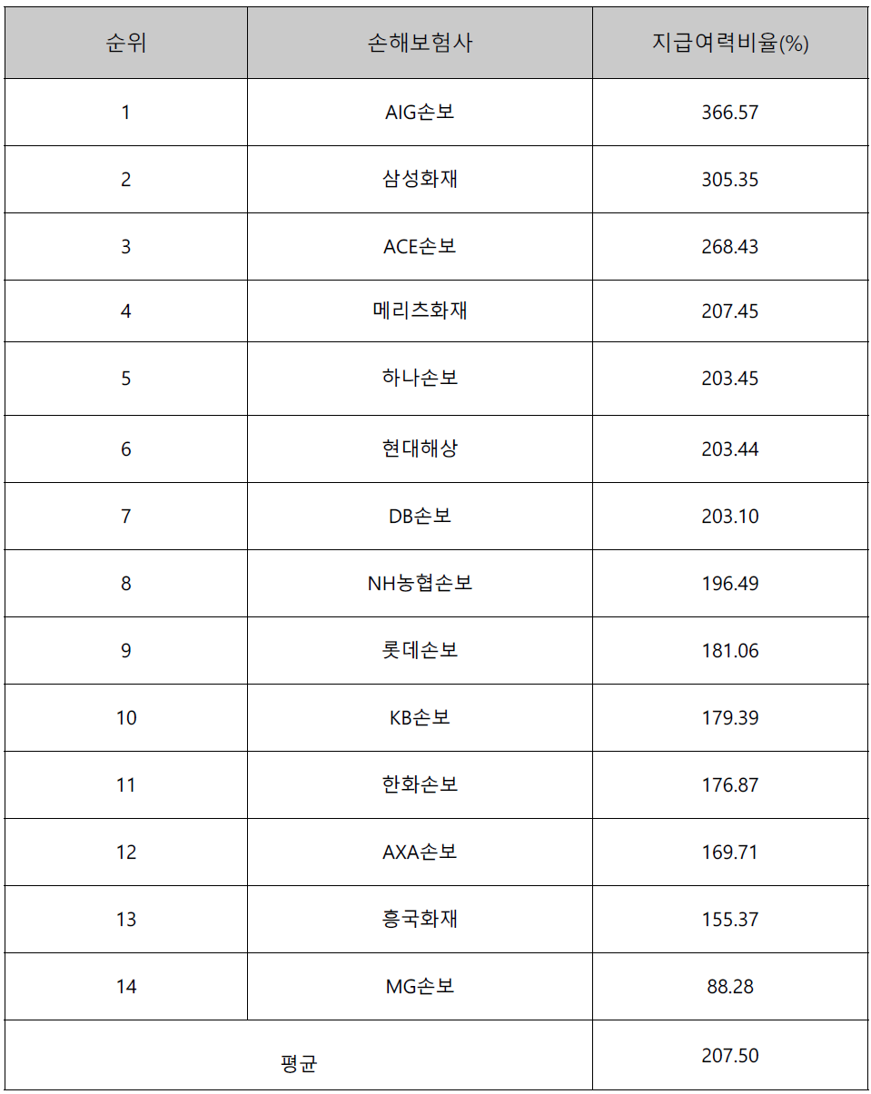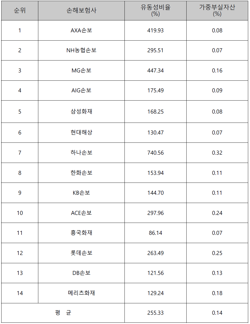 2위와 3위는 지난해와 동일하게 메리츠화재와 DB손해보험이 차지했습니다. 메리츠화재는 종합순위는 2위에 올랐지만, 건전성 부문에서는 14위로 최하위를 기록했습니다.