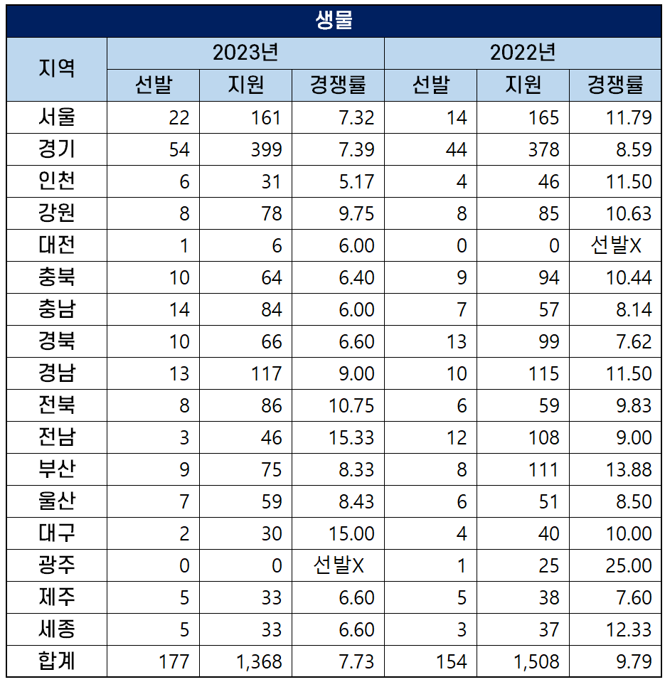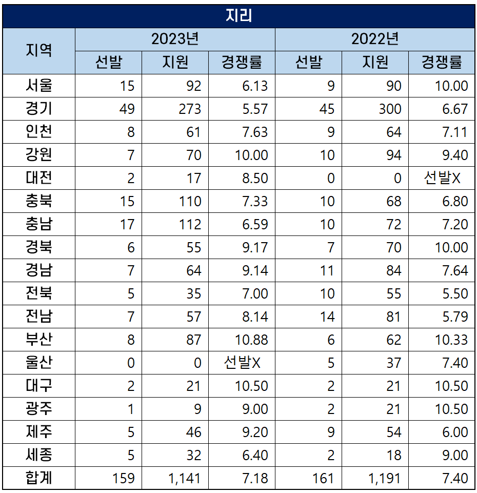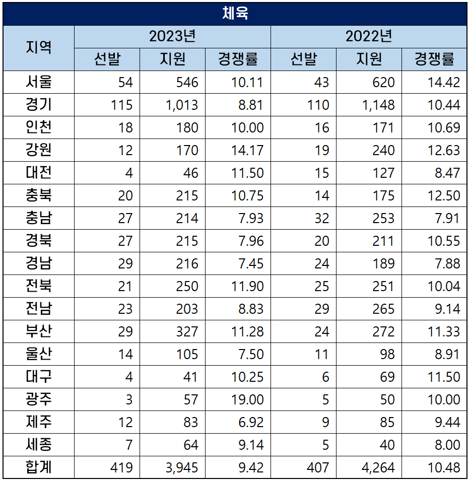 | 2023년 중등임용고시 경쟁률 (17개 시도 교육청 비교 정리) (1) | 2022.10.26 |