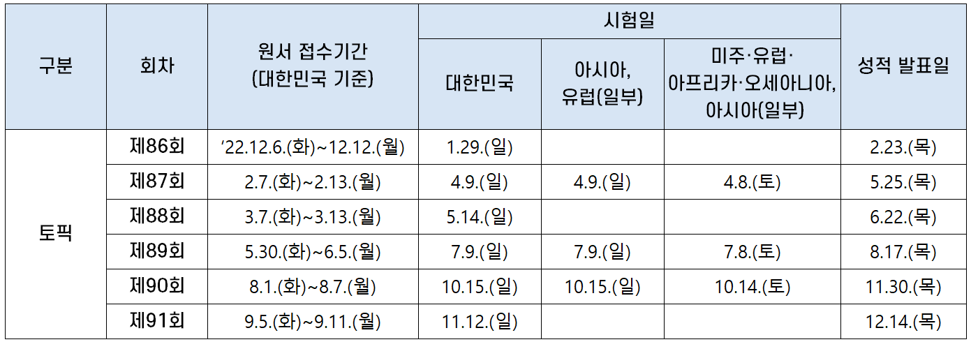 토픽 IBT 일정