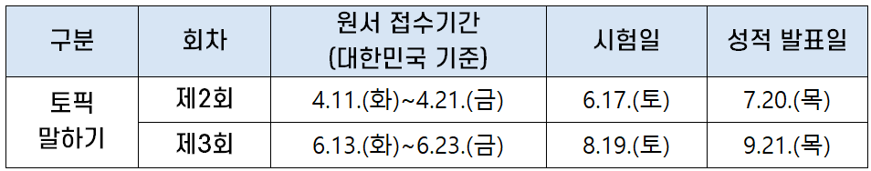 토픽 말하기 시험 일정