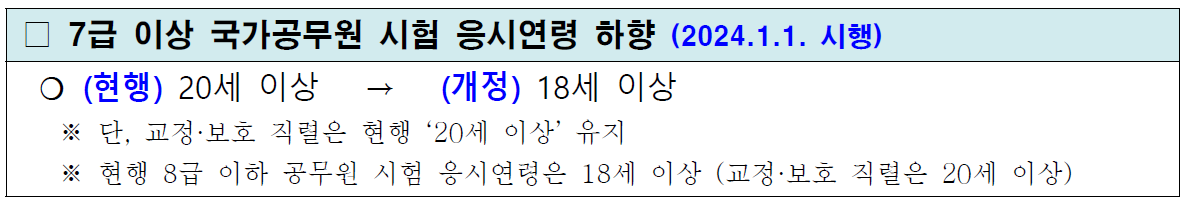 현재 7급 이상 국가공무원 시험은 20세 이상 응시가능하기 때문에 5급 공무원 공채 시험인 행정고시는 20세 이상만 응시 가능했는데요. 2024년부터는 7급 이상 공무원 시험 응시 가능 연령이 18세 이상으로 개정되기 때문에 18세 이상이면 행정고시 응시도 가능해졌습니다.
