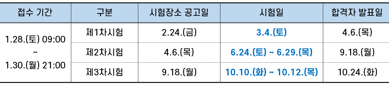 제1차시험 | 3.4.(토) | 4.6.(목) |