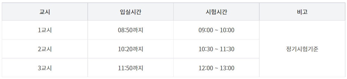 ※ 과목별 시험응시 가능한 시간