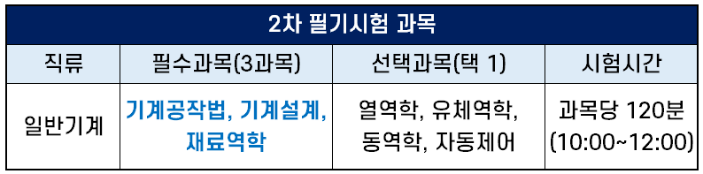5급 기계직 2차 필기시험 과목은 4과목인데요. 필수과목이 3과목(기계공작법, 기계설계, 재료역학)이고, 선택과목이 1과목입니다.