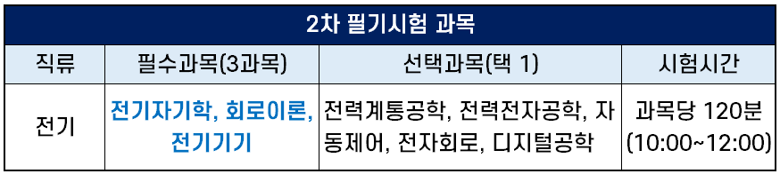 5급 전기직 2차 필기시험 과목은 4과목인데요. 필수과목이 3과목(전기자기학, 회로이론, 전기기기)이고, 선택과목이 1과목입니다.